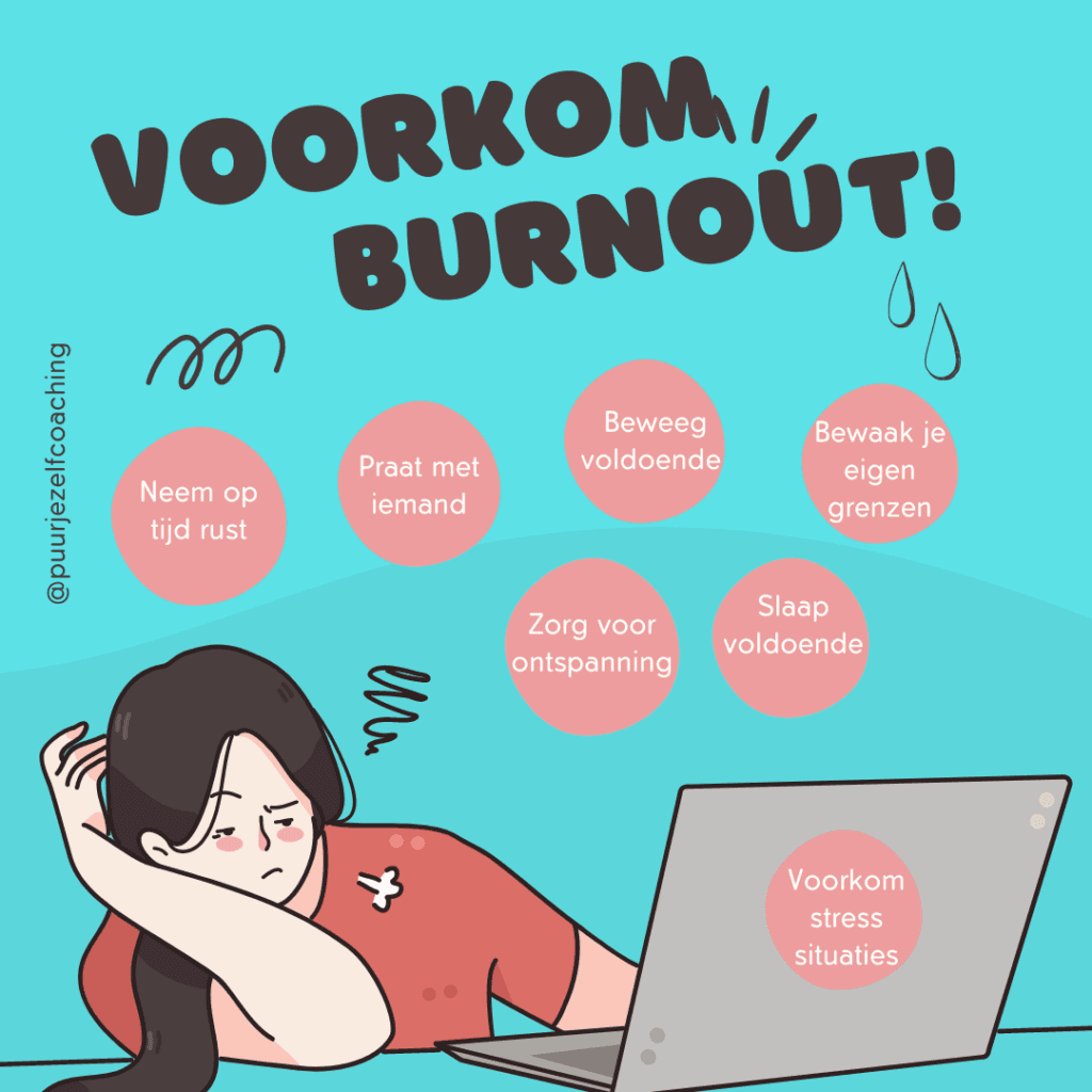 - fase 3: Toepassen van tools en inzetten van een ander gedrag ter bevordering van herstel en voorkoming van een burn-out.